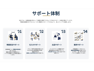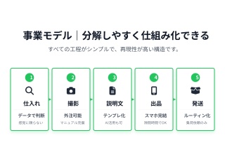 | 商材の強み | 未経験者でも迷わず運営できるよう、初期研修から運営マニュアル、出品テンプレートまで完備しています。専属のサポートスタッフによる個別指導に加え、売上が伸び悩んだ際の改善アドバイスも随時実施。単なるノウハウ提供にとどまらず、パートナーとして共に事業を成長させるための伴走型サポート体制を整えています。 |