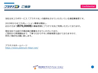 | お取り扱い商材 | 光コラボサービス「プラチナ光」 |